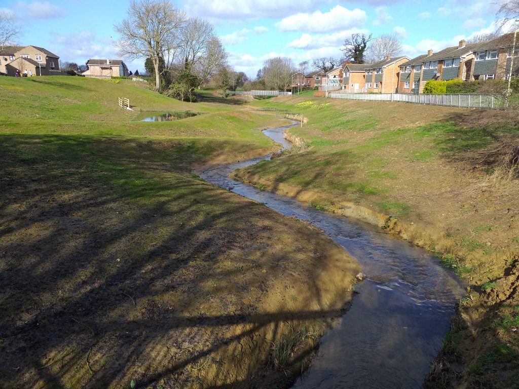 When the housing was built in the Abbeydale area of Gloucester in the 1960s, the Sud Brook was straightened and placed within a concrete channel. This project has seen the removal of a stretch of the channel and reintroduction of meanders, berms and other traditional riparian features along the brook. The area has been transformed with an improved landscape, new water habitats and public access to the waterside
